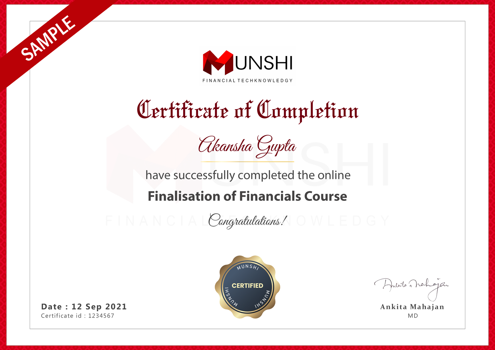 Professional life is full of validations & feedbacks, But with MUNSHI'S certification you need no one else's validation to approve your skills.